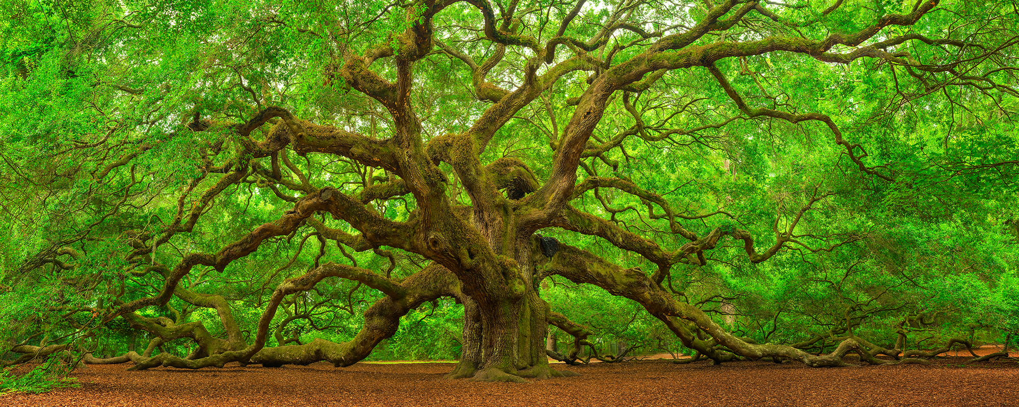 This majestic Southern live oak (Quercus virginiana) is estimated to be more than 500 years old, and covering over 17,000 square feet. While touted as some to be the oldest living tree in the south, in fact there are bald cypress trees much older. But one cannot deny its presence... a photograph cannot possible capture the grandeur of such an object of beauty. While I have seen many photographs of this tree located just outside Charleston, I was fortunate enough to visit over the course of three days to capture an image under the perfect conditions. On my last morning, an overnight rain and morning light diffused by the clouds gave me ideal conditions to photograph it.